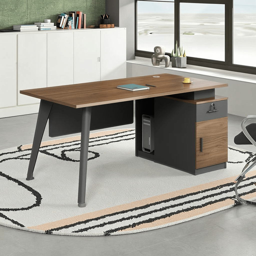 Stay organized effortlessly with multiple storage compartments, including drawers and side cabinets for files, stationery, and important documents. This design promotes a clutter-free workspace, allowing you to focus better and work more efficiently.
