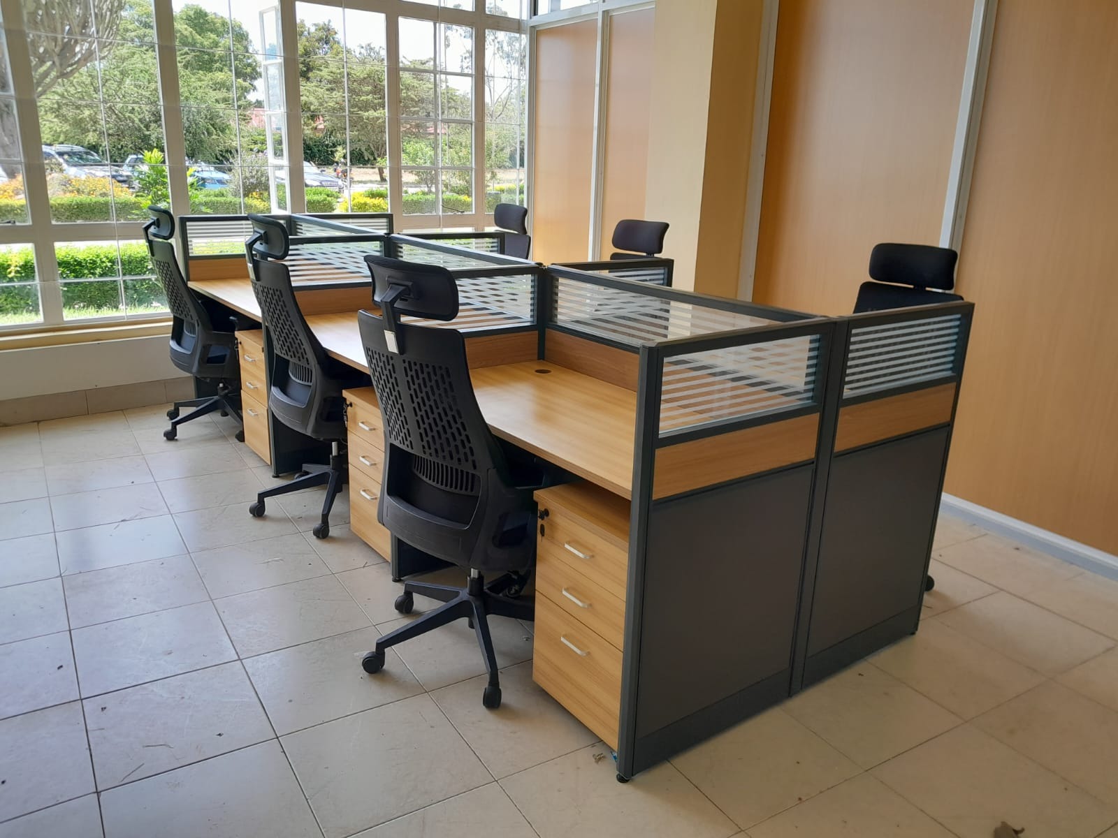 Each workstation is ergonomically crafted to support proper posture and reduce fatigue during long work hours. Spacious desk surfaces provide ample room for computers, documents, and office essentials, ensuring a comfortable and productive work experience.
