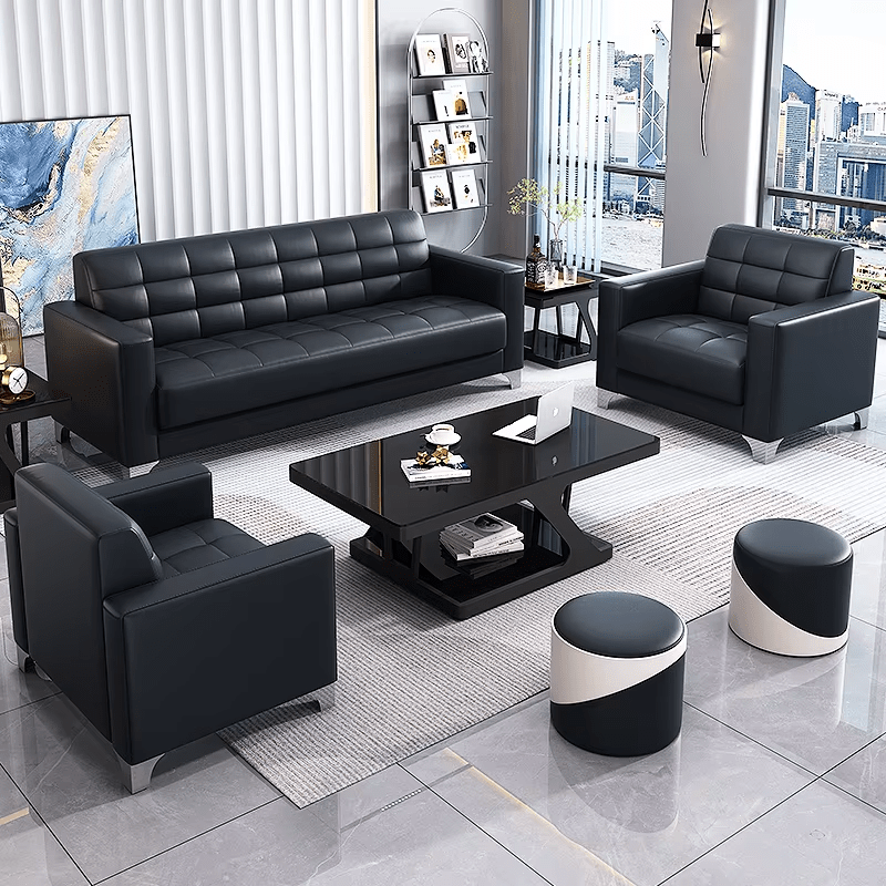 In addition, the sofa set is constructed from high-quality materials, including solid wood frames, premium foam cushions, and durable upholstery. This ensures stability, longevity, and easy maintenance, making it ideal for busy office environments.