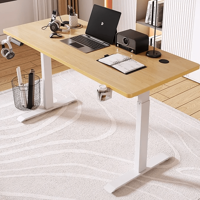 This desk features a smooth adjustable height mechanism, allowing users to switch between sitting and standing positions effortlessly. Ergonomic design reduces strain during long work hours, promoting better posture and overall health.