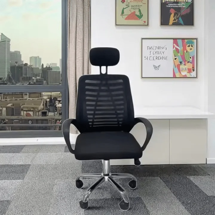 Upgrade your workspace with our Black Office Chair with Headrest – the perfect blend of comfort, style, and ergonomic support. Designed for long hours at the desk, this chair features a breathable mesh back, adjustable headrest, lumbar support, and smooth-rolling wheels for effortless mobility. The sleek black finish complements any office décor, making it ideal for home offices, executive suites, or corporate workstations. Stay productive and comfortable throughout your workday with this high-performance office chair.