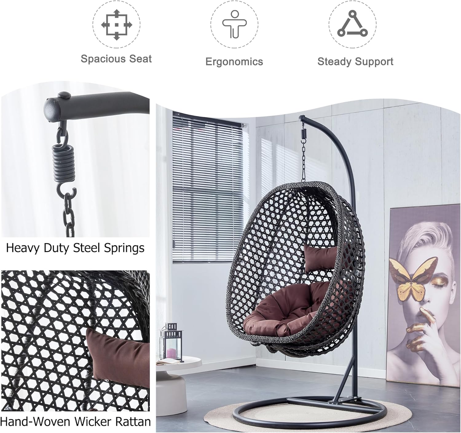 Featuring a comfortable cushioned seat, this chair supports your back and body for extended periods of relaxation. The hammock-style design gently sways, enhancing comfort and creating a calming, stress-free experience.