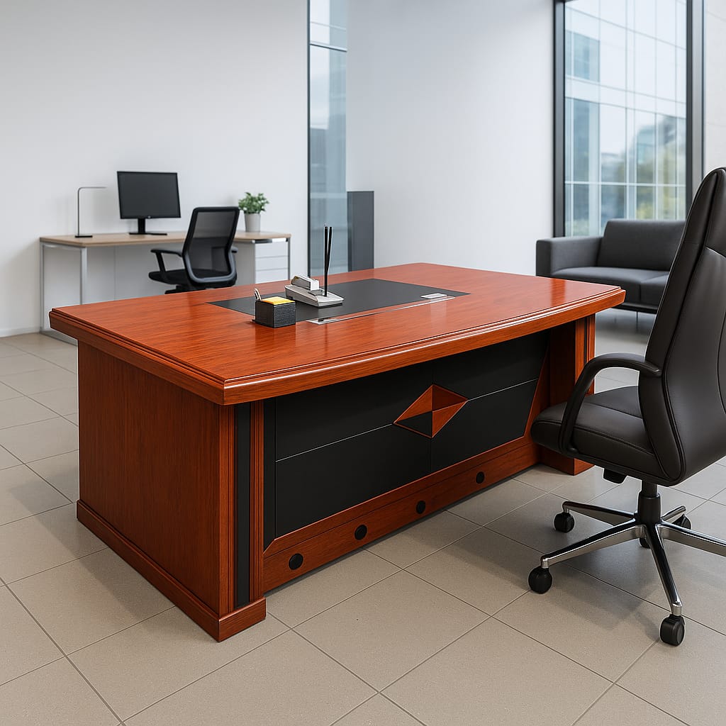Crafted with premium wood or engineered materials, the desk features a polished finish that suits any high-end office. Not only does it make a bold visual statement, but it also enhances the aesthetic appeal of executive suites, corporate offices, and home workspaces.